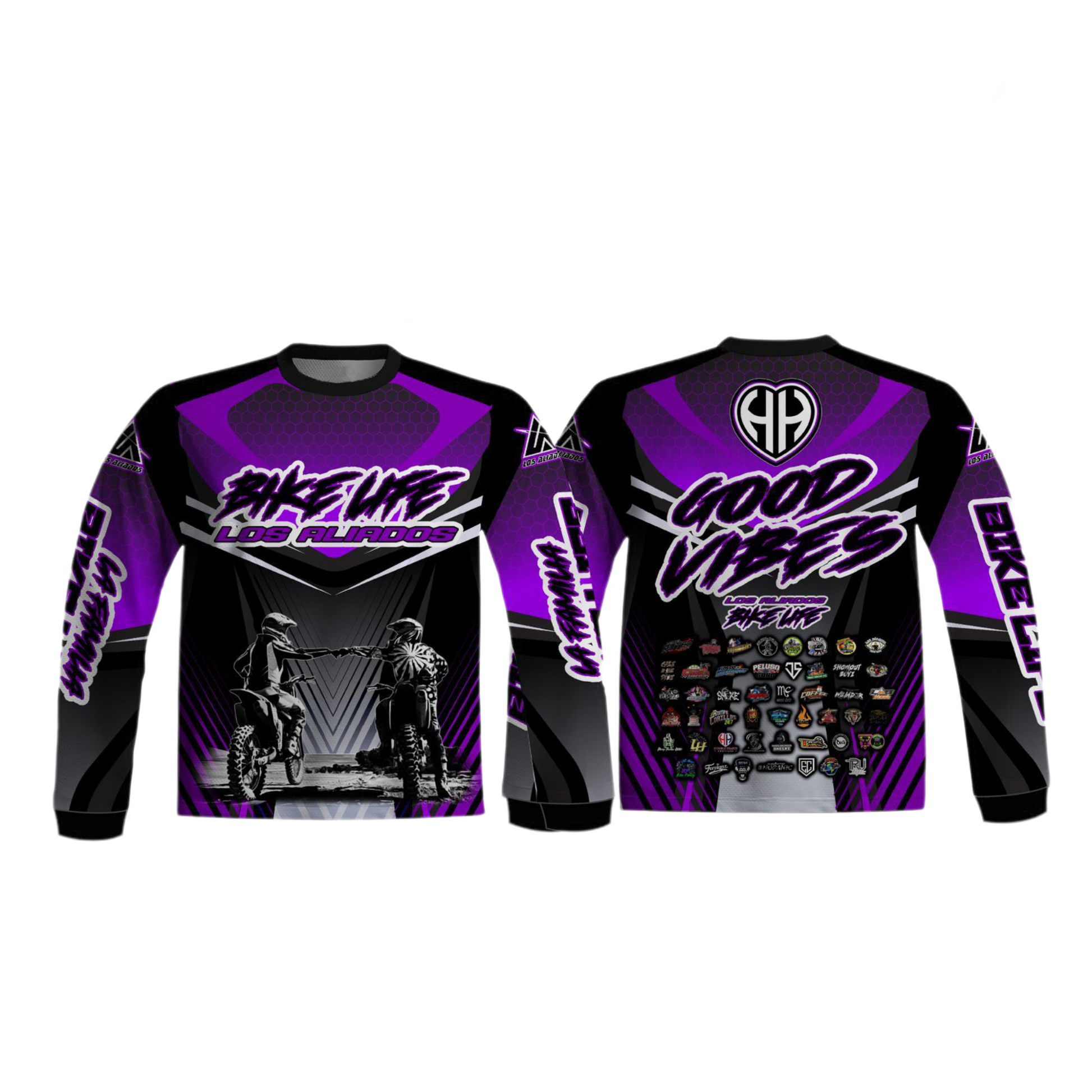 Para Los Aliados, el color violeta refleja el respeto y la sabiduría. Son recordatorios que creamos para ayudar a llevar los valores dentro de la cultura del bikelife.